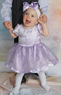 Here is Elisa's Easter dress! I actually made it a month or two ago. I bought the fabric at Joannes and used the same pattern as he Christmas dress. Which, speaking of, I am SO DONE with that pattern. Too many pieces to sew together. Yuck. But I think it turned out super cute. I love the glittery swirl fabric, but I do not love that the glitter comes off easily. Will NOT buy that fabric again. I make sure to hand-wash it so the glitter doesn't all come off at once, but all I have to do is touch it and it comes off! Bummer. I also made her a hair bow to match, which stars the glitter ribbon I got at Michaels. I think I paid no more than $10 for this dress. Cheap for a dress this cute! She wore it for her Easter portraits: